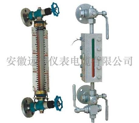 儀表上下閥門均裝有連接法蘭,法蘭接頭與被測容器焊接在一起而構成連通器,從而在玻璃管上可直接顯示容器內介質液位的高度。